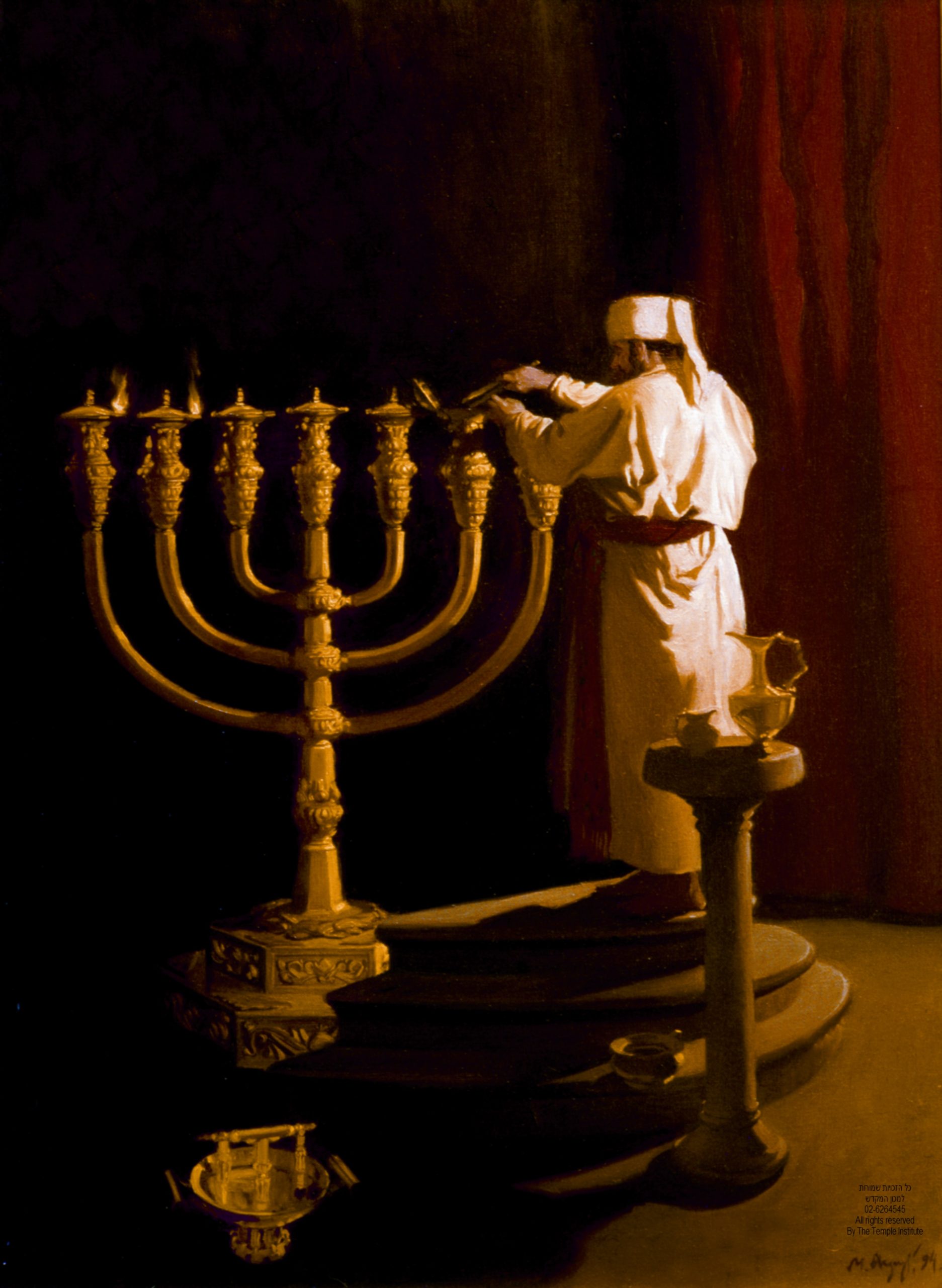Each afternoon every lamp of the menorah received the same amount of oil, one half of a lug (150ml/5.3fl.oz) β enough for the flame to be lit until the following morning. Even though the western light had an equal amount of oil as the rest, it miraculously did not turn itself off when the others did.Β