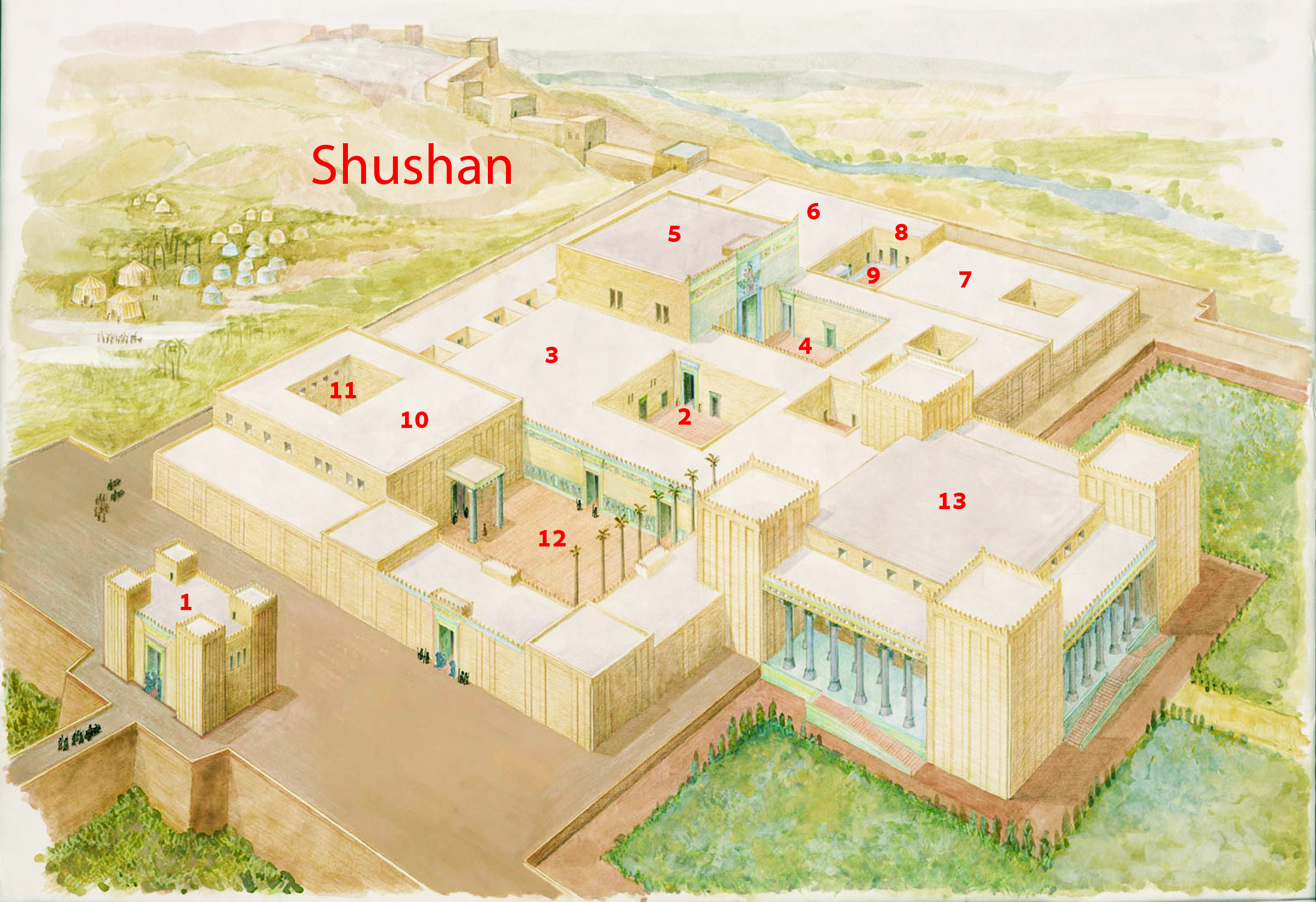 See image for the locations. [13 is the Apadana, column court]
